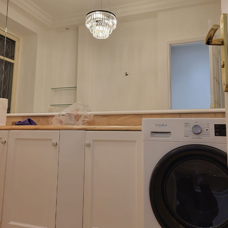 Finitions, peinture, Création murs/éléments en plaques de plâtre, carrelage, peinture et peinture.